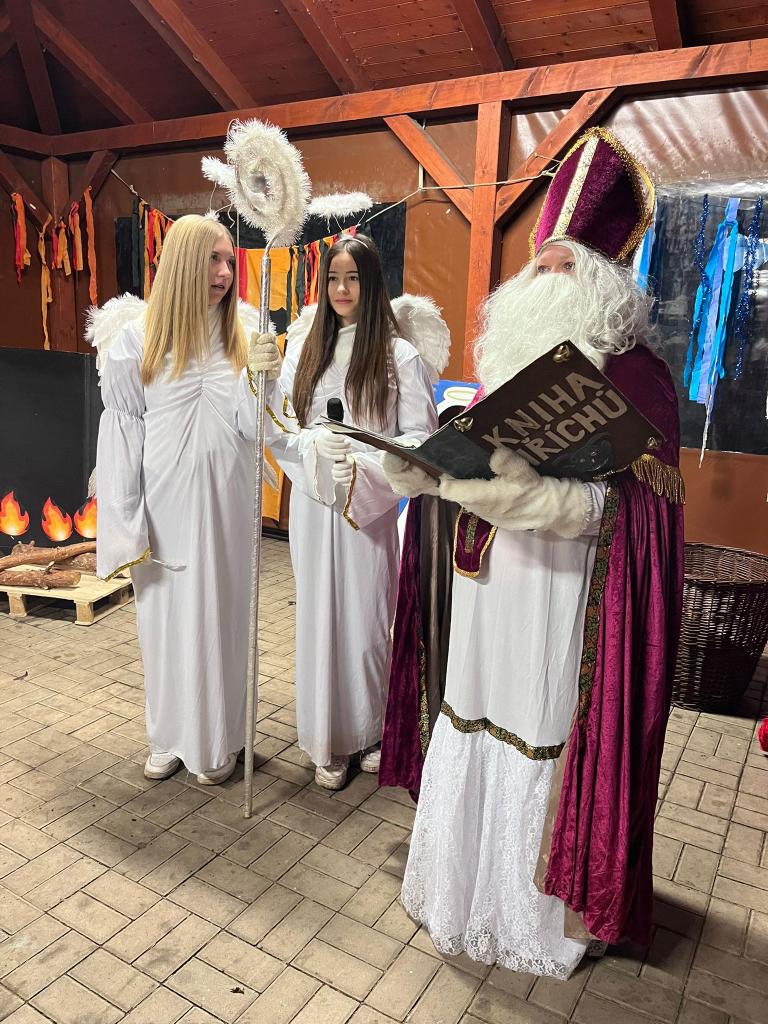 Společně jsme přivítali Mikuláše, který si s dětmi povykládal, vyzpovídal je a připomněl jim, jak důležité je být hodný a pomáhat druhým. Andělé pak malým odvážlivcům předali balíčky plné dobrot jako odměnu za jejich odvahu a šikovnost.