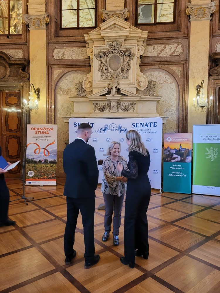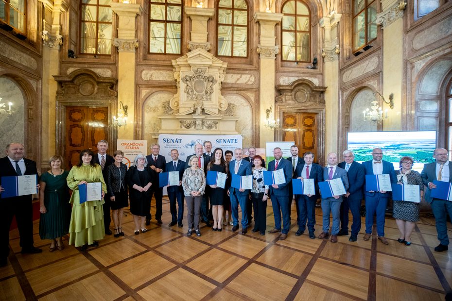 Na slavnostním ceremoniálu, který se konal za účasti zástupců ministerstev, přebírali starosta Jiří Drobný společně s místostarostkou Lucií Maleckou pamětní list z rukou paní europoslankyně a předsedkyně Spolku pro obnovu venkova Veroniky vrecionové.