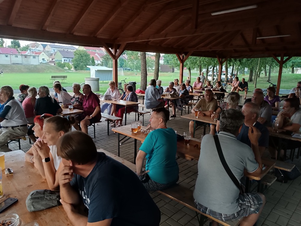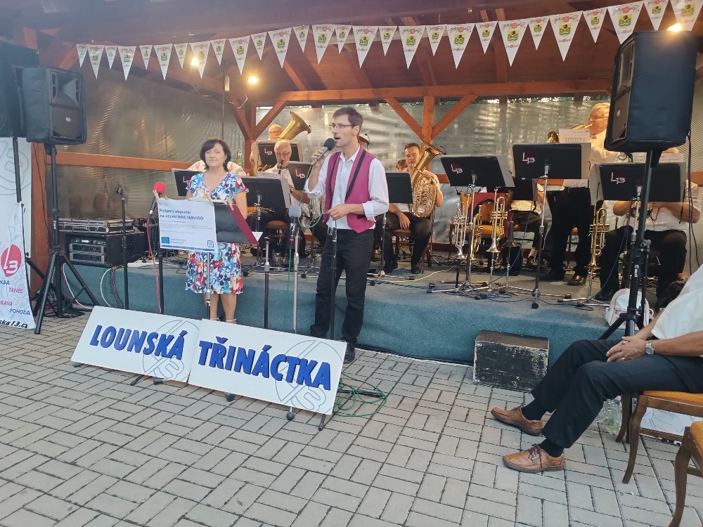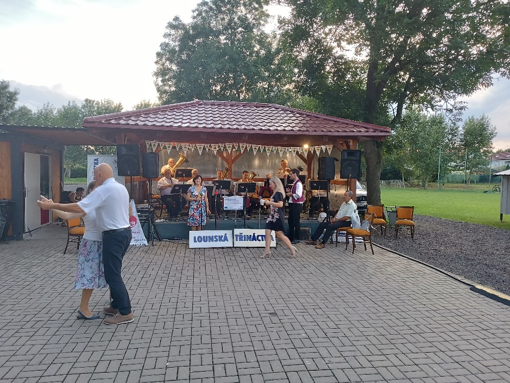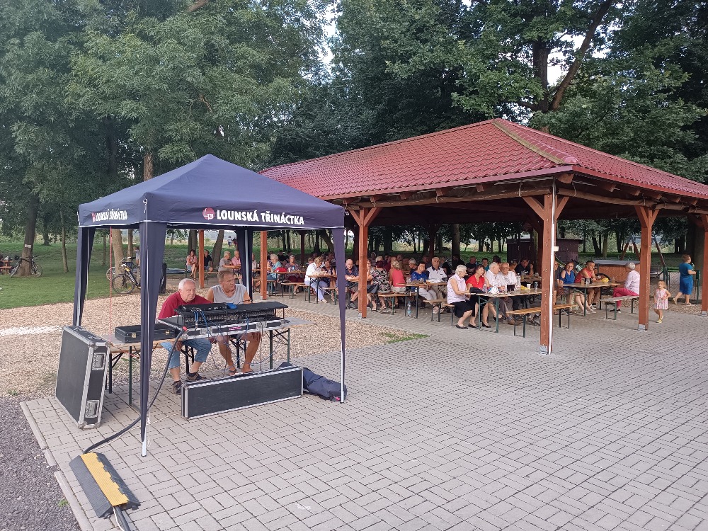 V sobotu 17. srpna Lounská třináctka potěšila svými písněmi na 50 posluchačů pod pergolou u fotbalového hřiště.